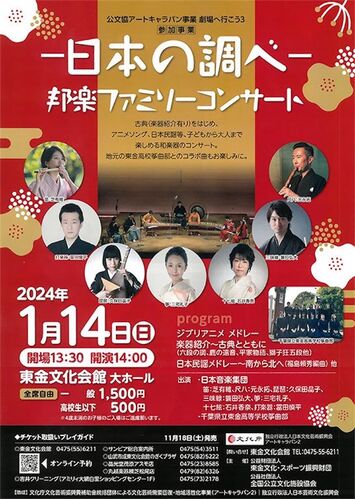こちらの公演は終了しました。 東金文化会館にて、日本音楽集団の公演が開催されます。 東金高校箏曲部との共演も見どころです!